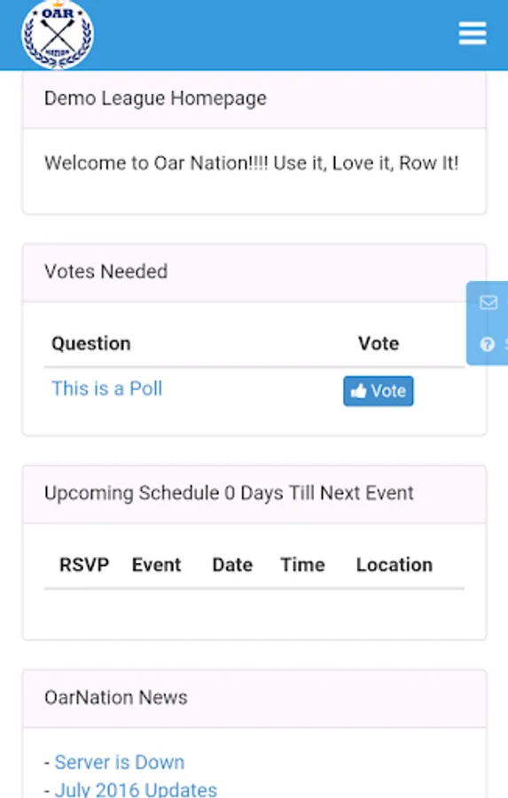Oar Nation's team and club management app has taken rowing club management into the next generation. Thousands of coaches, administrators, players and parents use Oar Nation’s sports team management software to sign up, schedule, communicate and coordinate everything for the team, club and the season. Oar Nation for Android makes organizing the team and club as simple as click, tap and go. For more information, please visit https://oarnation.com. Or simply download Oar Nation now to try it out!