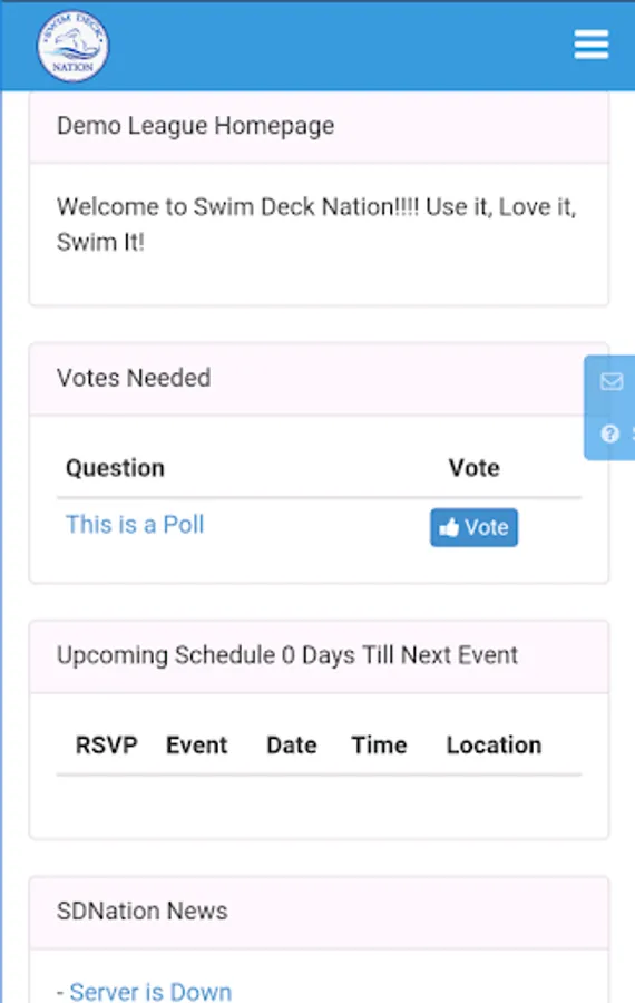 Swim Deck Nation's team, club and league management app has taken swimming management into the next generation. Thousands of coaches, administrators, players and parents use Swim Deck Nation’s sports team management software to sign up, schedule, communicate and coordinate everything for the team, club and the season. Swim Deck Nation for Android makes organizing the team and club as simple as click, tap and go. For more information, please visit https://swimdecknation.com. Or simply download Swim Deck Nation now to try it out!