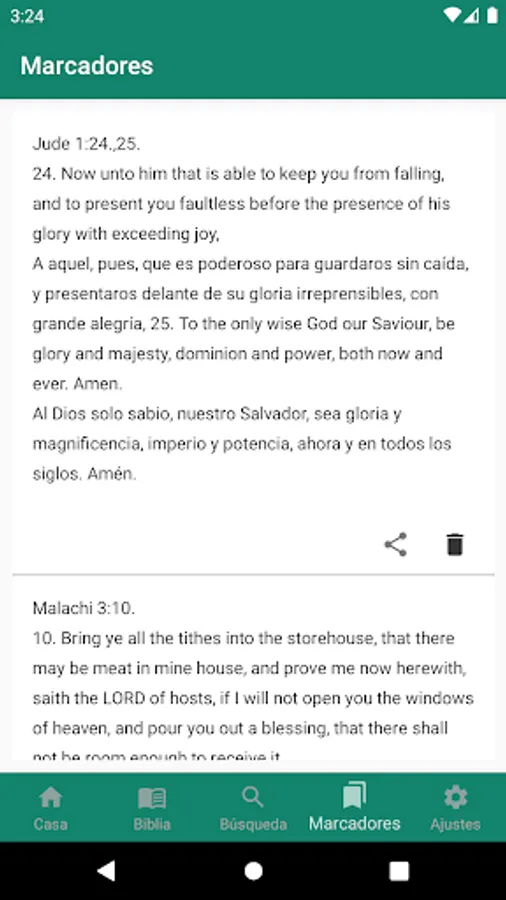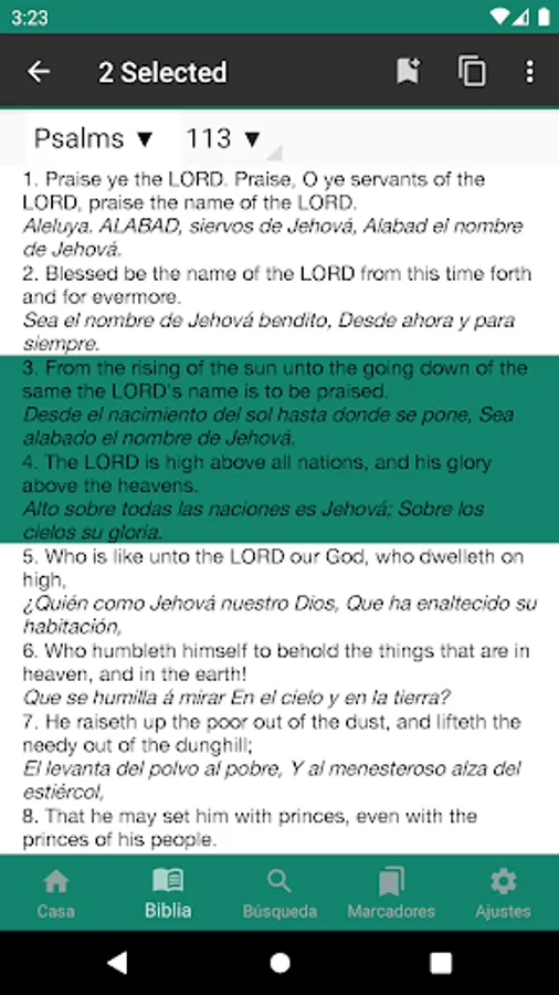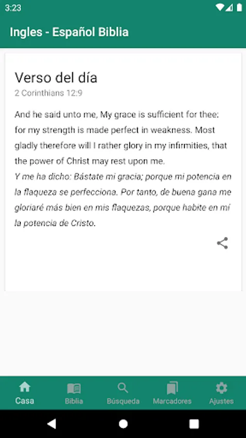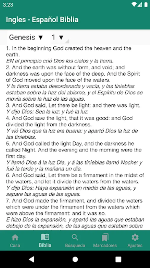 Easy to use, free, fast and offline multilingual King James Version (KJV) Bible in English and Spanish, Reina Valera in your android device. Wake up everyday to a new, inspiring and motivating Bible Verse.