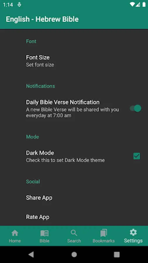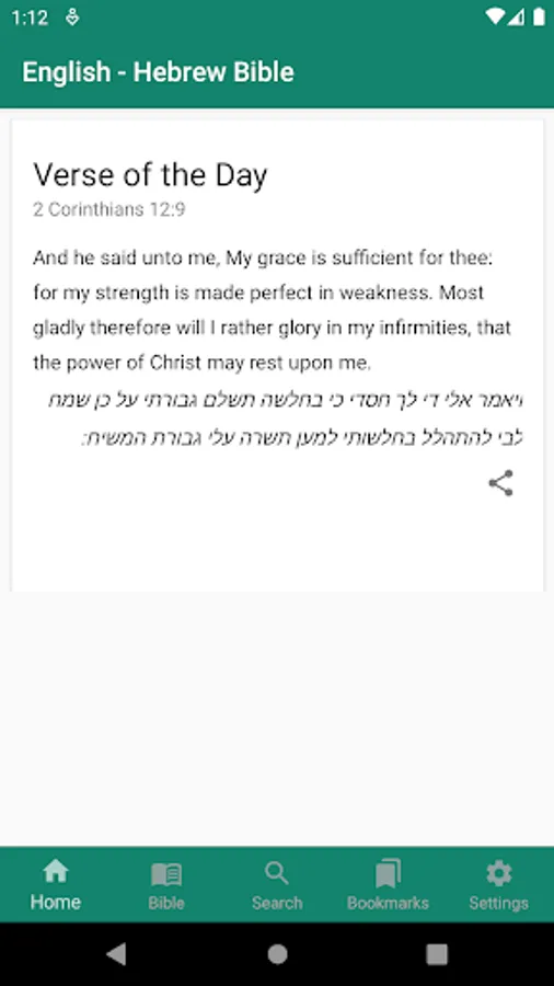Easy to use, free and offline multilingual King James Version (KJV) Bible in English and Hebrew in your android device. Wake up everyday to a new, inspiring and motivating Bible Verse.