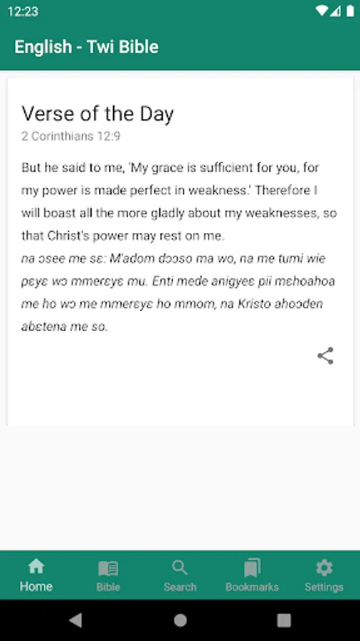 Easy to use, free, fast and offline multilingual Bible in English and Twi in your android device. Wake up everyday to a new, inspiring and motivating Bible Verse.