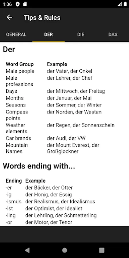 Learn German noun genders (Der, Die, Das) with this educational app!