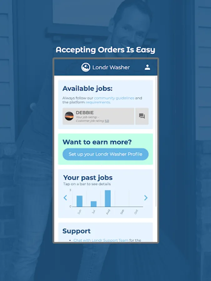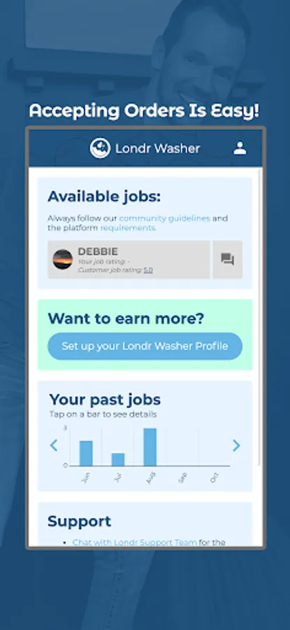 BUILD YOUR OWN CLIENTELE - Unlike other apps that randomly assign workers, as a Londr Washer your customers can mark you as a favorite. That means their jobs go to you first each time, and you can build relationships with your customers as well as a reliable revenue stream.