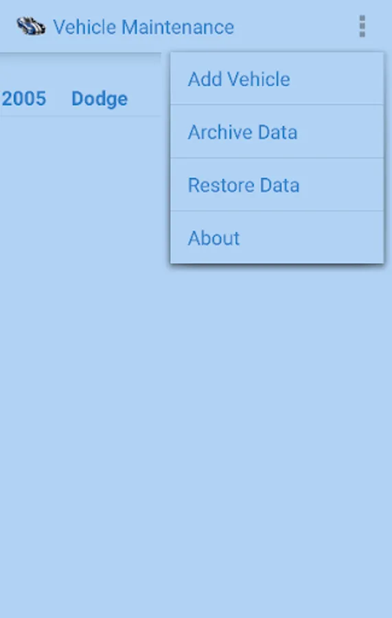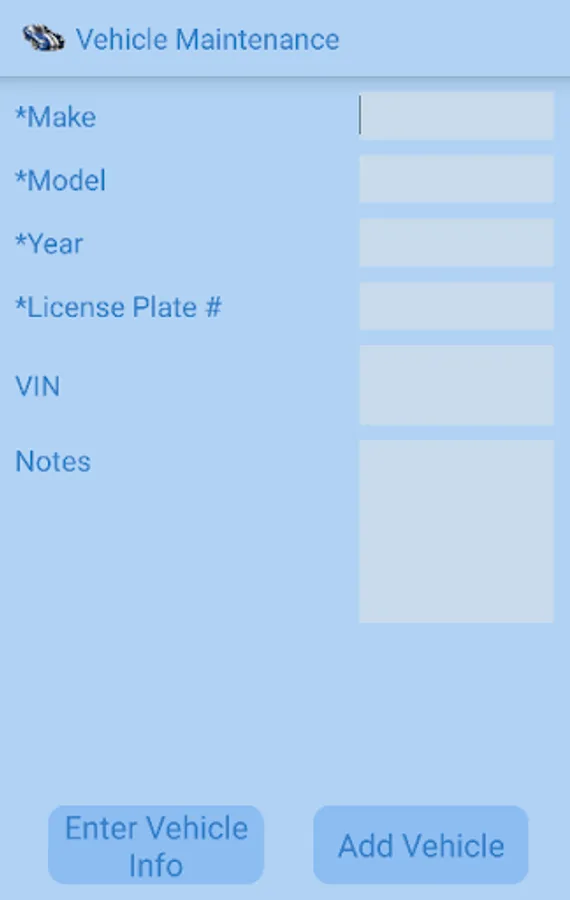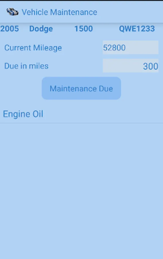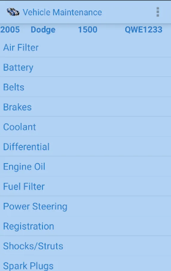 This app allows you to track your vehicle maintenance such as oil change and tire rotation. It also lets you enter information for supplies such as air filter type and wiper blade lengths. You can enter when the last maintenance was accomplished as well as the maintenance interval. This allow you to use the "maintenance due" function to easily see what maintenance is due within a certain mileage. You can also copy your data to the storage device to move to a new device or for back up purposes.