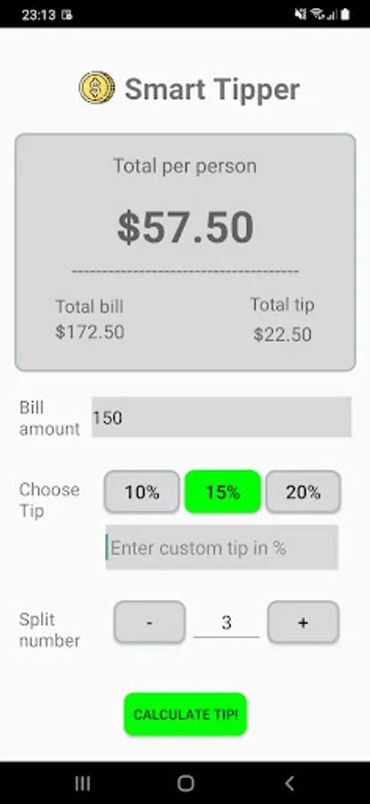 Smart Tipper - A free application designed to help you quickly calculate tips and split bills!
