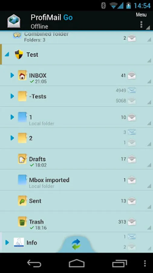 ● Folders tree hierarchy - see all accounts and their folders in a tree view