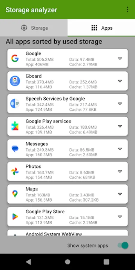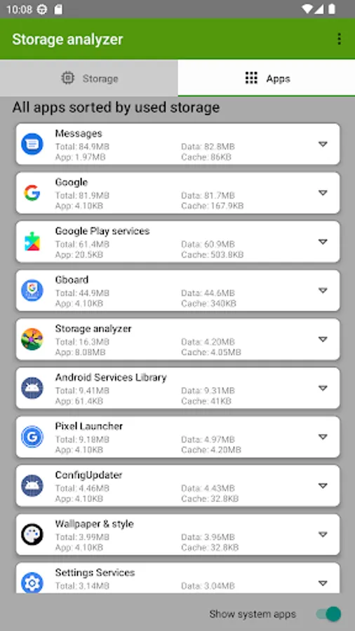 Storage Analyzer is a tool that can find largest files and folders in your device's internal storage, and identify which apps consume most storage.
