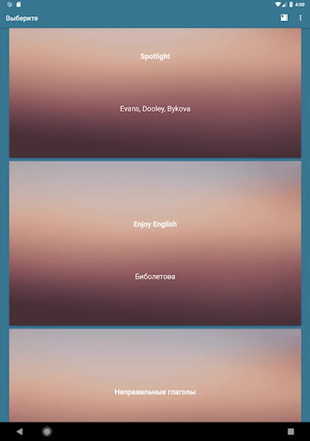 The application includes words studied in the 4th grade of Russian schools according to the programs:
