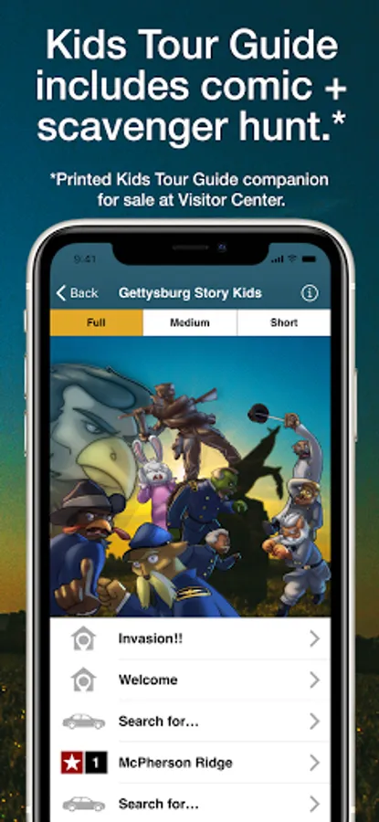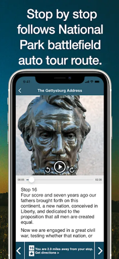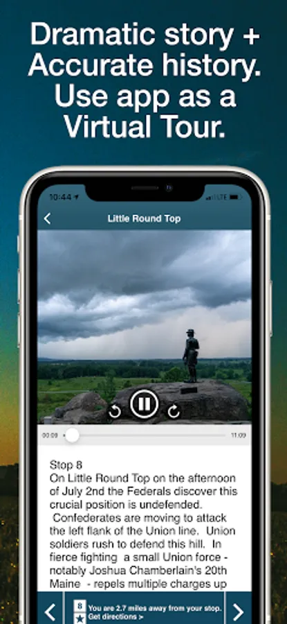 • Virtual tour, the app works off-site to tour the battlefield remotely.