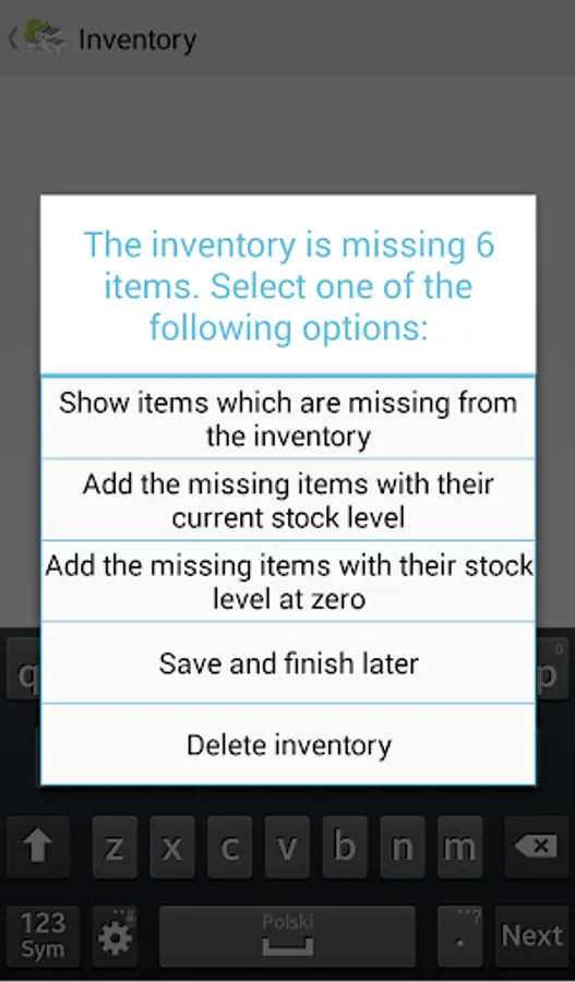 + saving incomplete inventories with a possibility of finishing them at a later date
