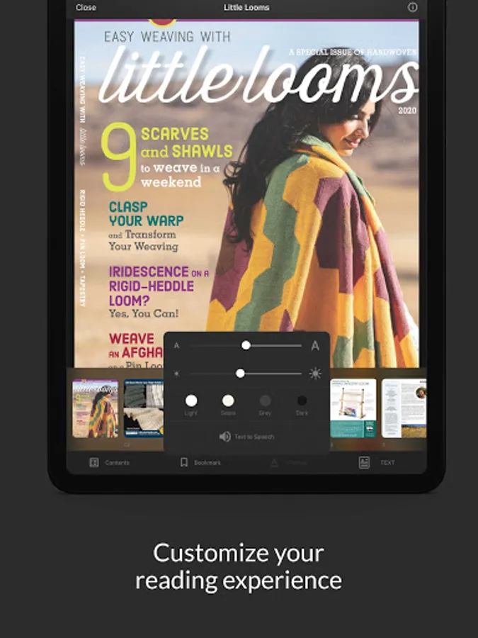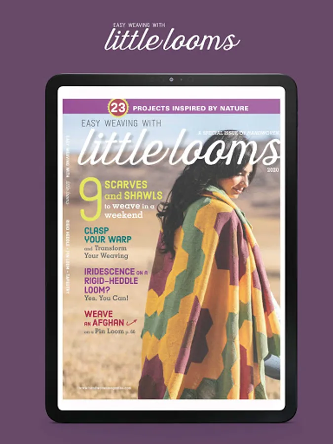 Each issue will have the mix of 18–22 projects, techniques, and features you love, expanding the focus on fundamental weaving skills, creative inspiration, and innovative applications. Each issue is designed to have something for beginning and more experienced weavers. In addition to the core subjects of rigid-heddle and pin-loom weaving, Little Looms regularly includes projects and articles about tapestry, tablet weaving, and inkle weaving.
