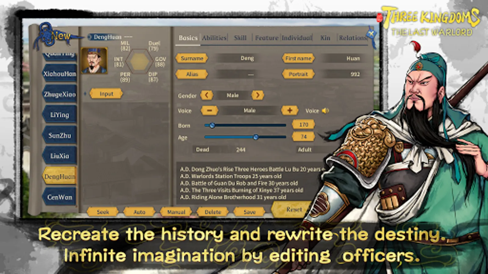 Three Kingdoms: The Last Warlord is a turn-based lord-playing strategy game developed by the Chengdu Longyou Studio. The studio created this game world set in the period of the Three Kingdoms mainly based on people's opinions on other games set in that period. The game is very detailed in depicting the differences between various cities and also the abilities and features of the military officers. The game also applies an appealing battle system in which weather, landforms, and many other factors will influence the result of each battle.