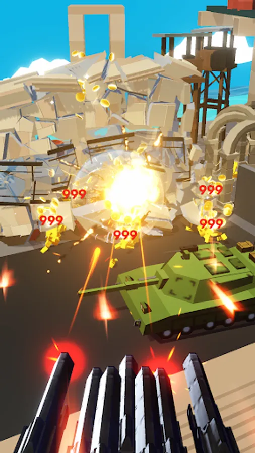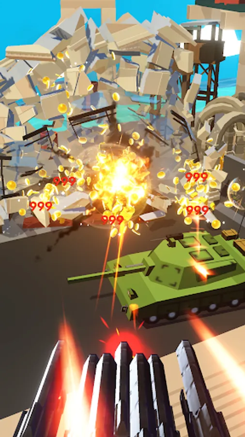 The game uses physics to create very realistic expressions of destruction such as pillars and buildings. Flashy effects, realistic sounds, and vibrations combine to create an exhilarating shooting game.