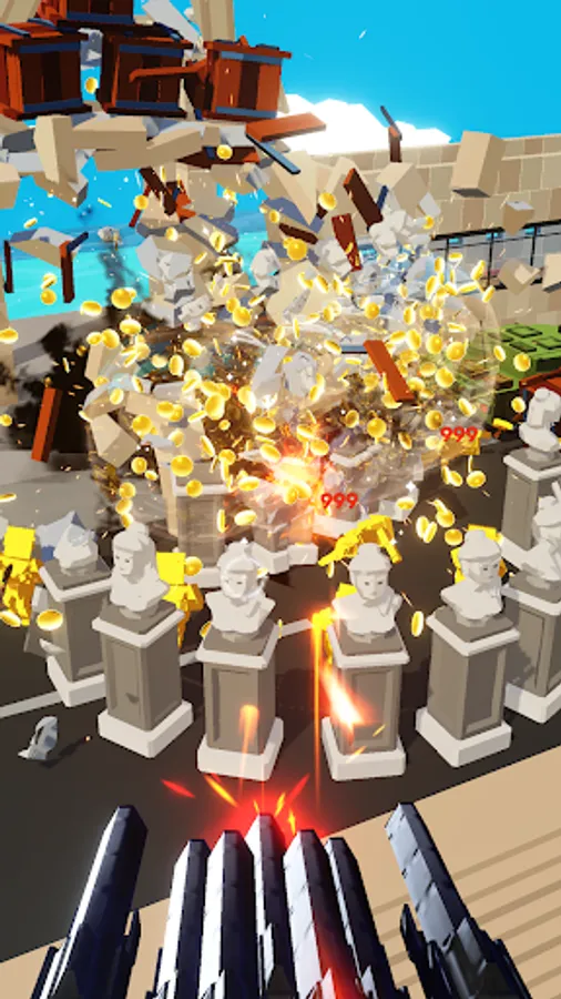You can shoot guns and smash a large number of objects to pieces. Destroy everything you see, get coins and collect all bullets.