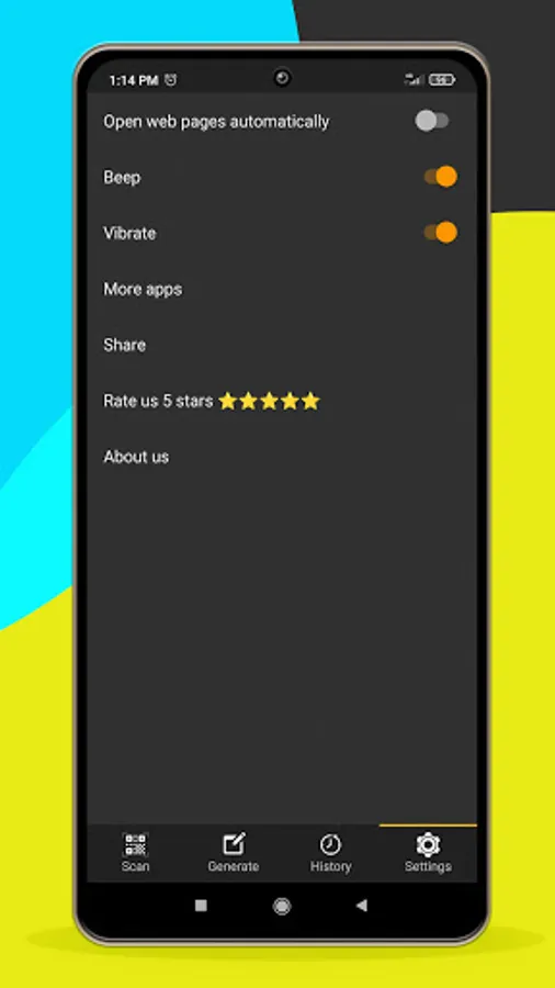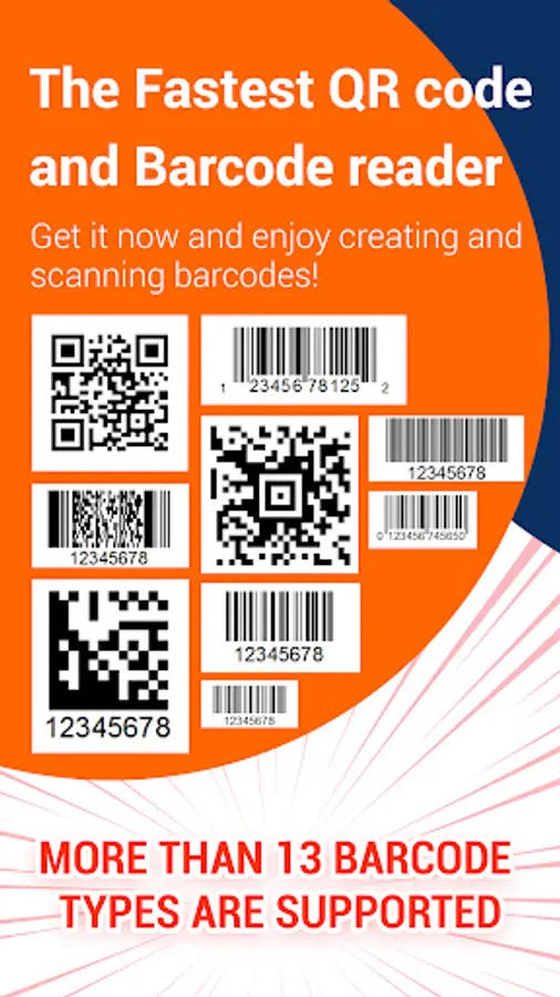 QR Code Reader & QR Code Generator for android scan all flash code types: QR code, EAN13, Barcode product (UPC), ITF, Code39, Code128...