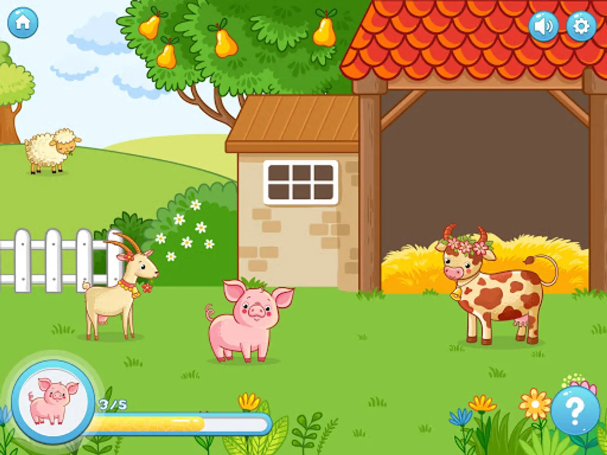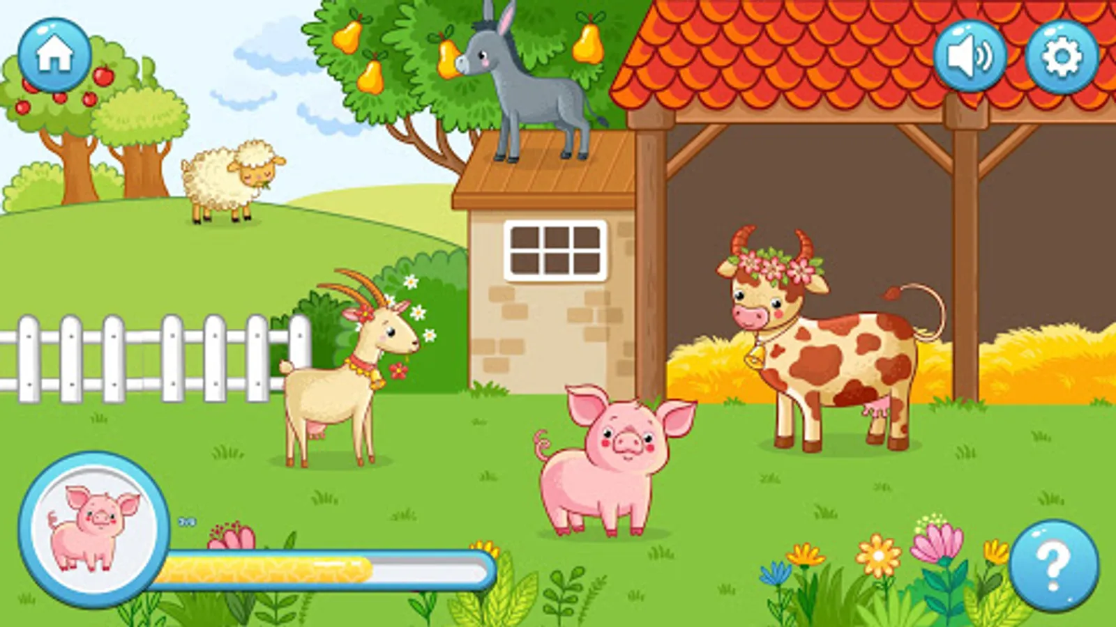 Free kids games with colorful graphics, cute animals, and various backgrounds, help your baby develop matching, tactile and fine motor skills while playing in 6 categories – farm, home, sea, forest, pole & south.