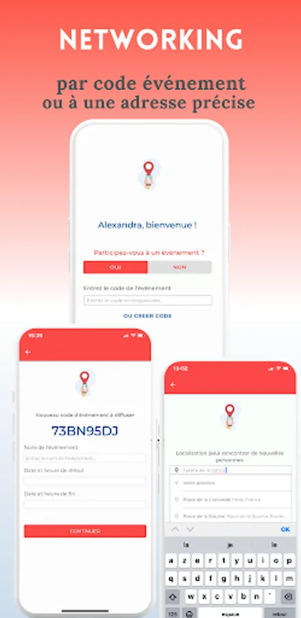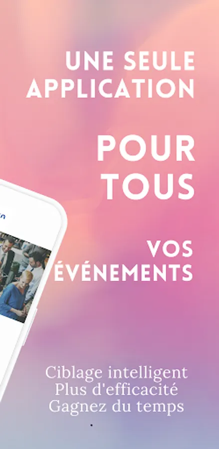 Create and customize your professional profile in the blink of an eye, highlighting your skills and experiences. Easily connect to an event using an existing event code, communicated by the organizer of your event, or create your own event code to bring professionals together around a specific theme.