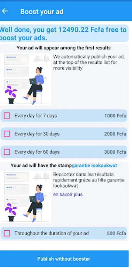 • Thanks to the new deposit criteria, publish your ad and sell your goods in a few clicks.