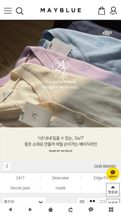 Quickly check new products that are updated daily through the Mayblue app, and conveniently meet various events and time sales with app push notifications.