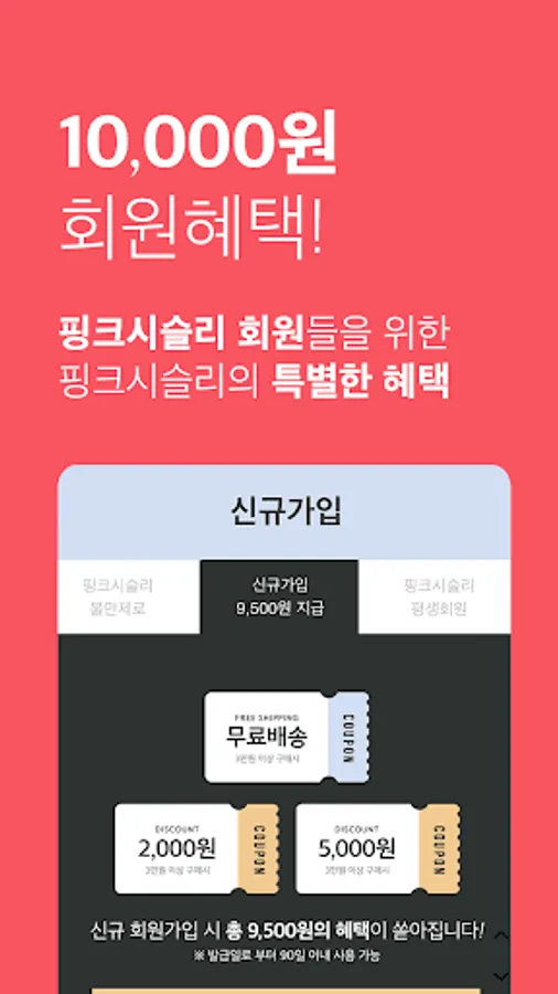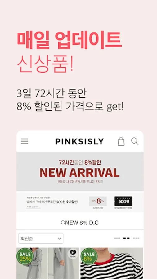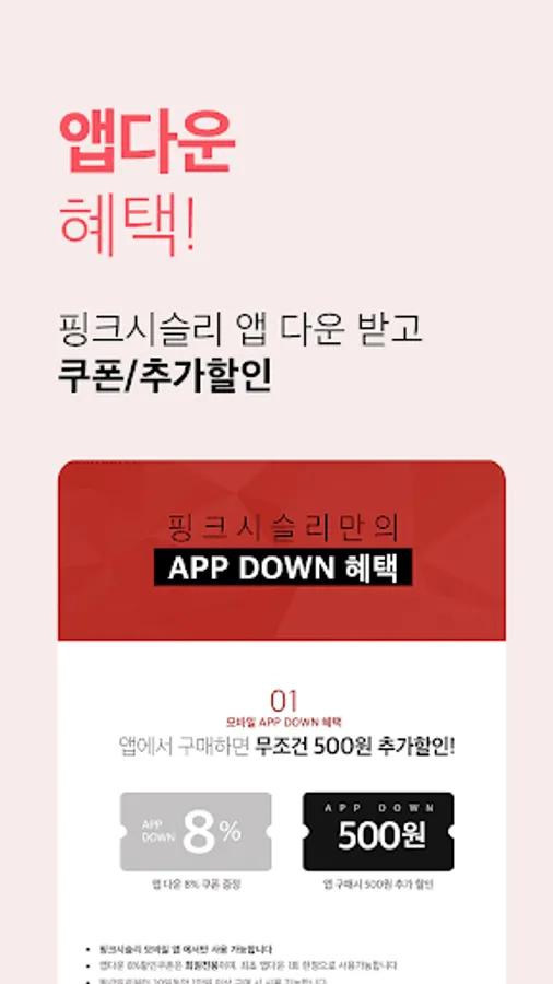 Through Pink Sisley App Discover the benefits of shopping information, such as mobile shopping, events, new products, customer service center.