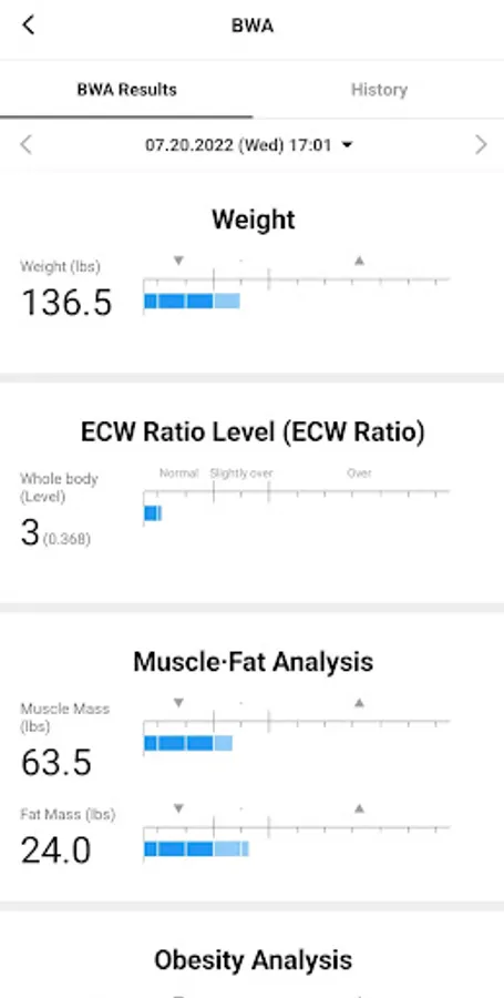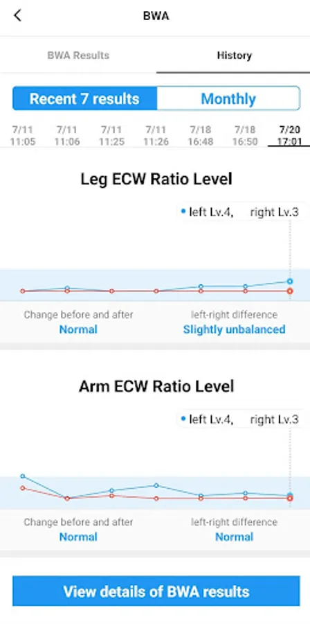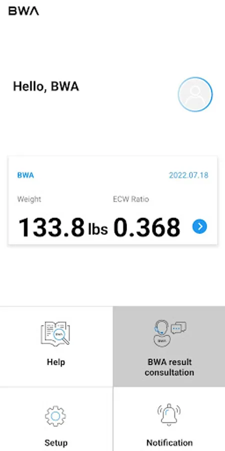 BWA ON provides essential functions for body water management at home. You can conduct the BWA test and check the results with its interpretations by connecting with a home-use body water analyzer, BWA ON. Check your improvement of body water with the BWA test.
