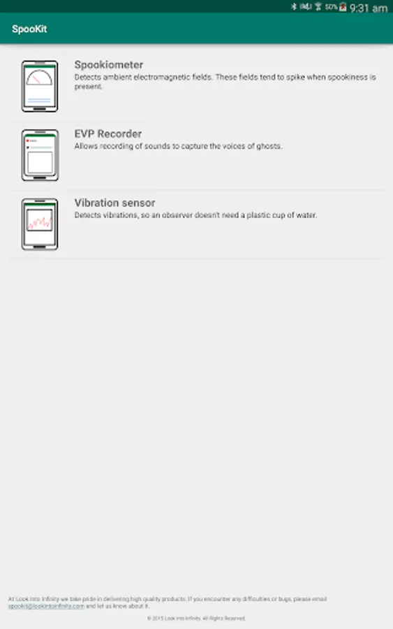 SpooKit is a suite of professional tools that facilitate investigation into the paranormal, in particular, for investigating ghosts and other "spooky" phenomena. SpooKit includes: