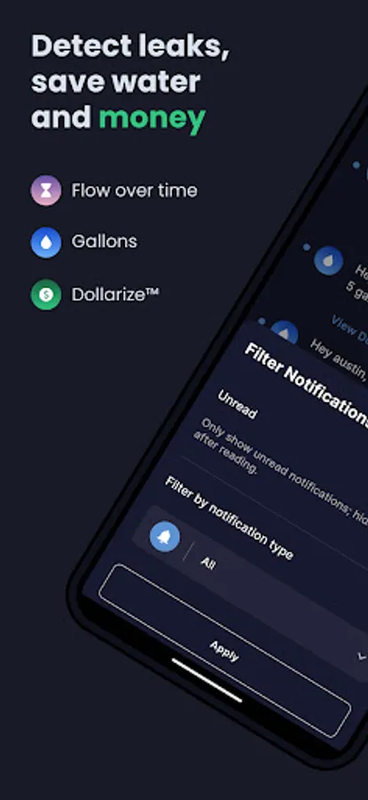 Flow Over Time, Gallons, Dollarize™ Alerts: Receive alerts based on flow over time, gallons consumed, or dollar amounts spent to detect anomalies or exceedances.