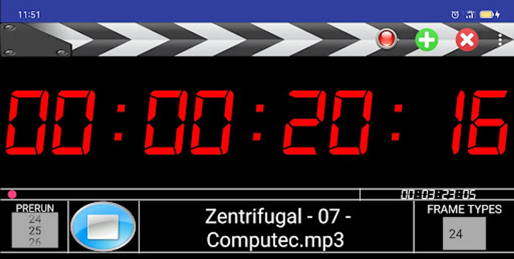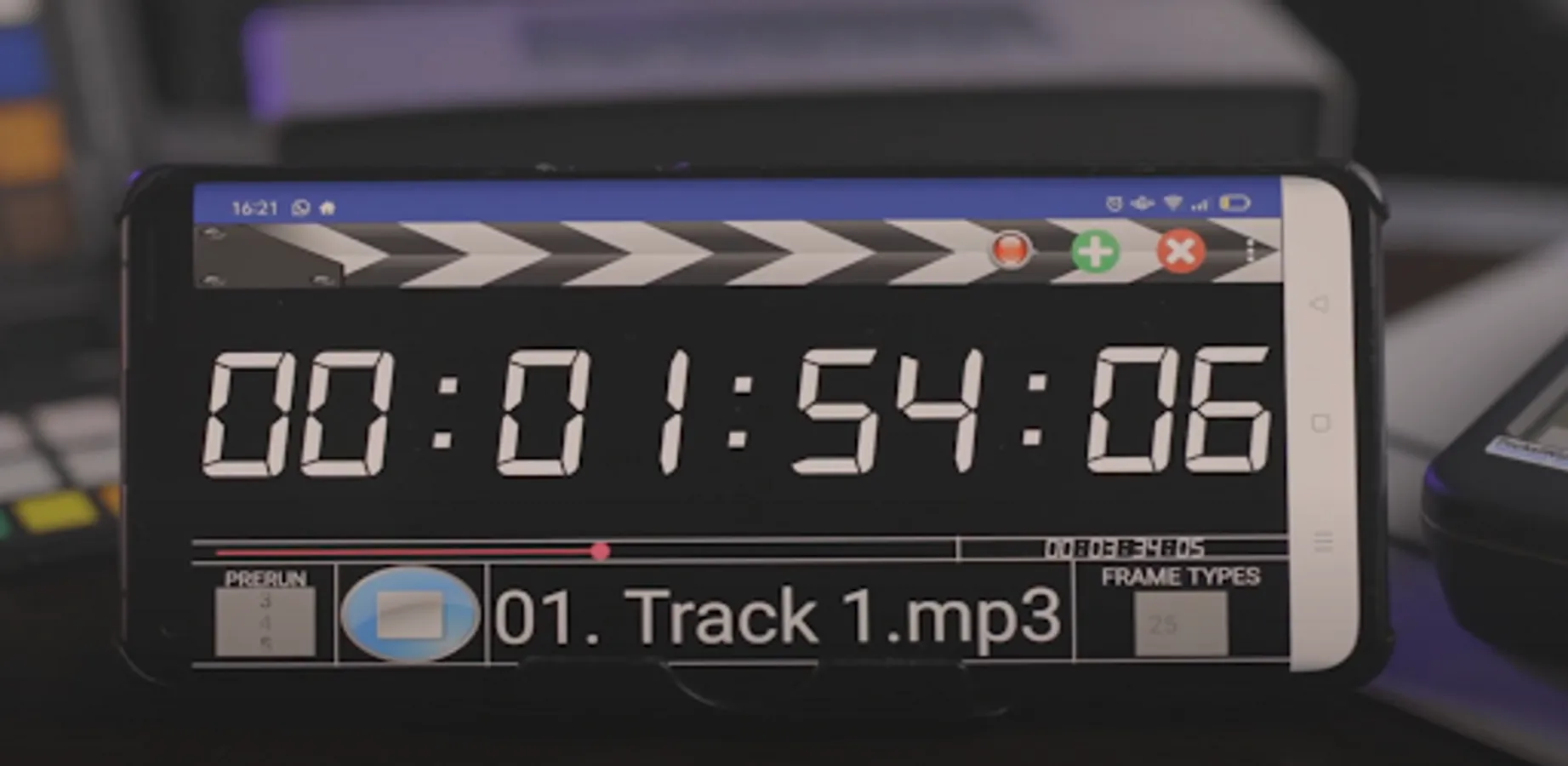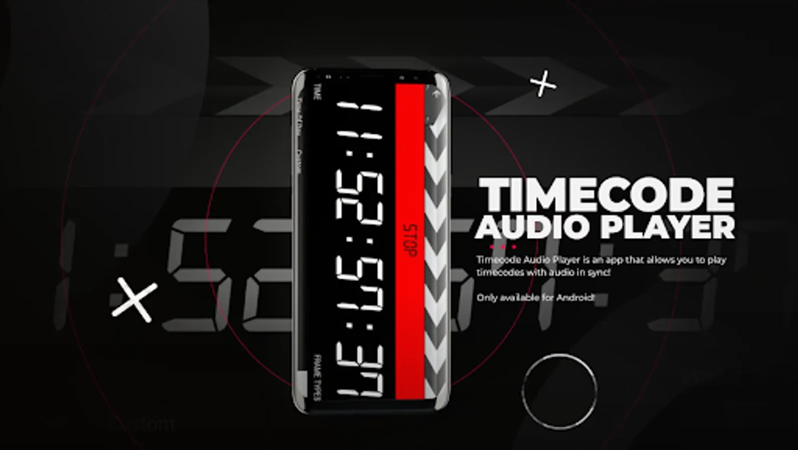 The Timecode Audio Player plays an audio file and displays a frame-accurate timecode for synchronisation during video editing. You only need to briefly point the display of your device to the recording camera while starting playback. When editing, you simply have to enter the timecode. This saves a lot of time when editing music videos.