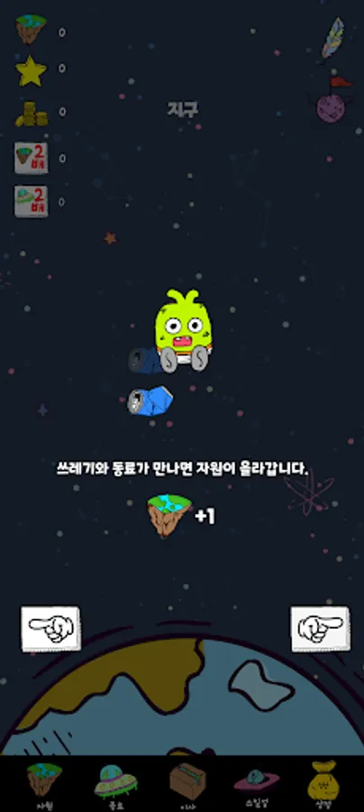 *** Collect the trash that pours out of the planet. Garbage becomes a resource, and you can recruit allies with the resource!