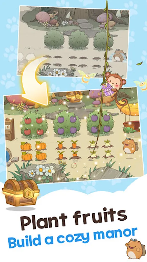 - Manor: run a farm, collect acorns, plant fruits and vegetables;