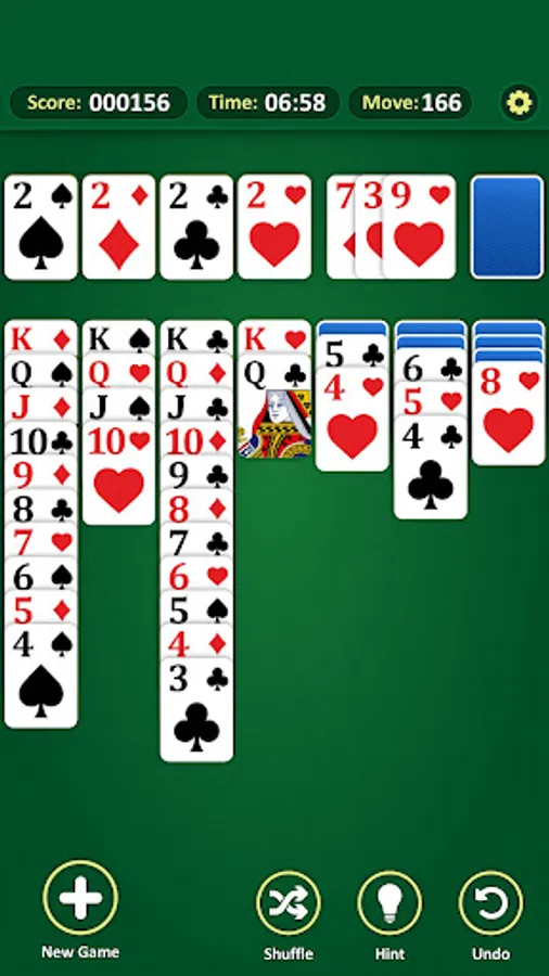 Start to Solitaire with the Ace and end with the King. Create four piles of cards in ascending order. You should always line up the red and black cards in a row. Think well, be faster, right move and earn more points with every game and beat your high score! Hint and undo helps you when you get stuck.