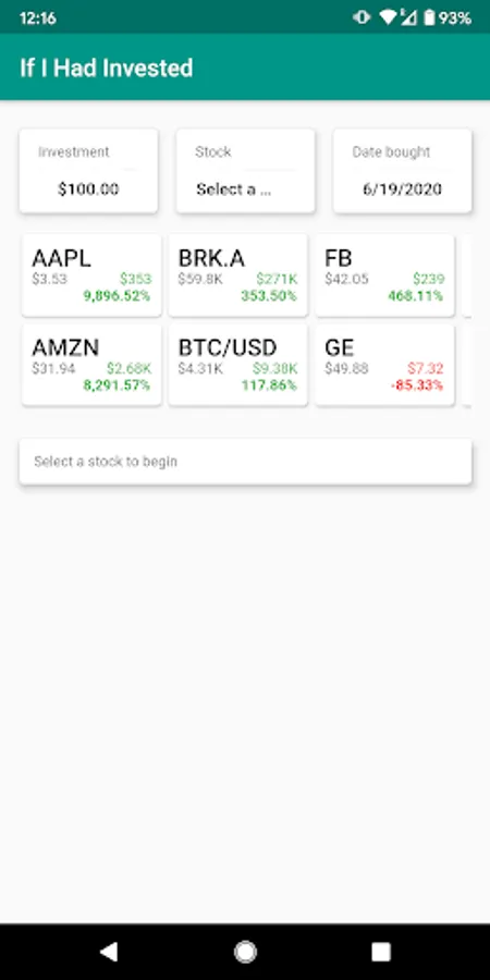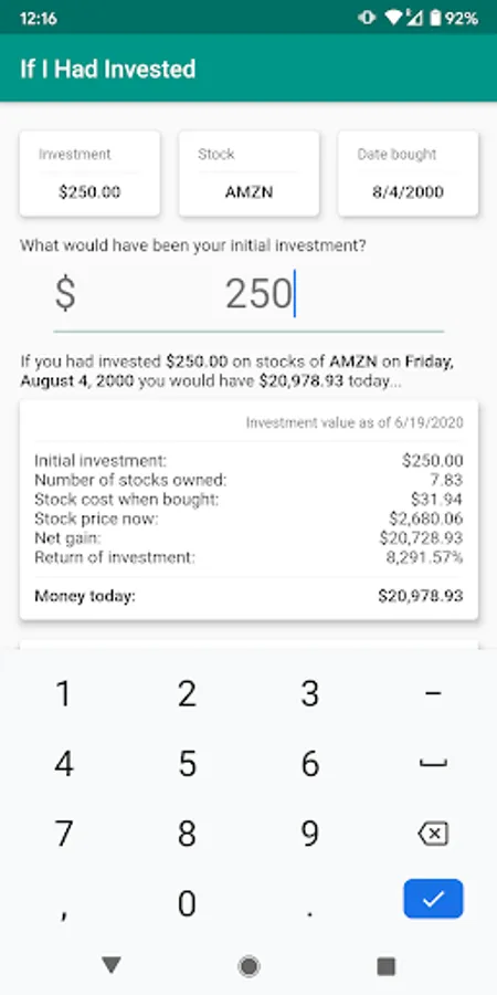 The app calculates in real-time as soon as you change the stock, the initial investment, or the date that you made the buying transaction.