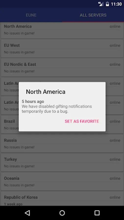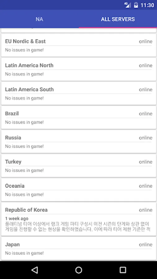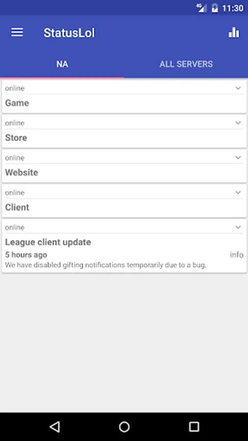 Be able to check the status of all the League of Legends servers with a single tap.