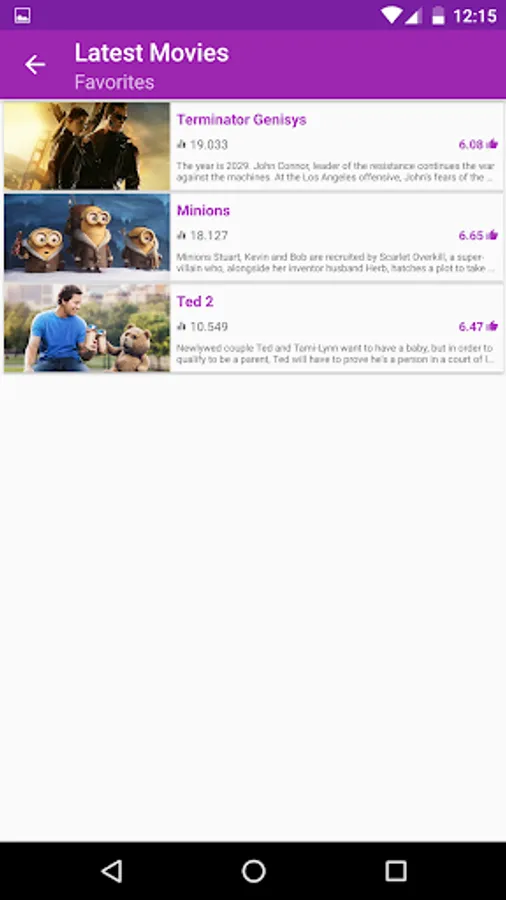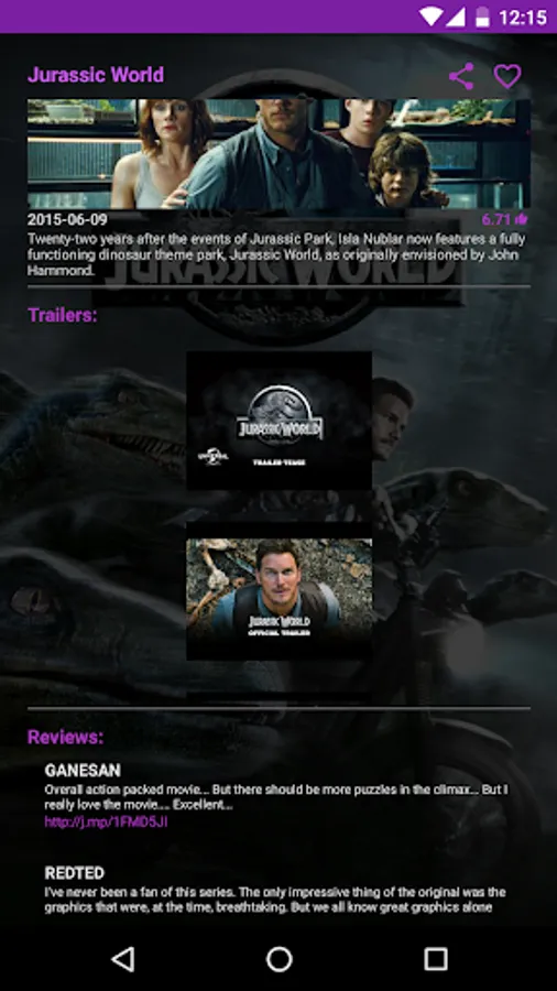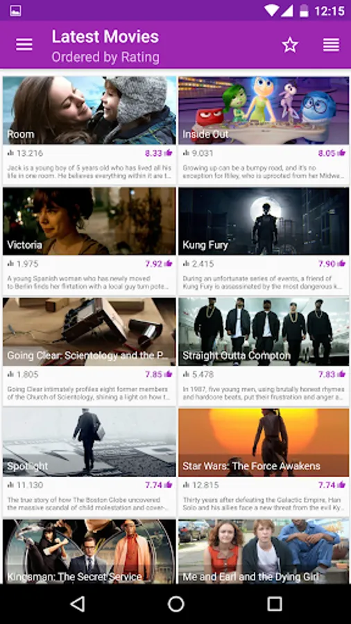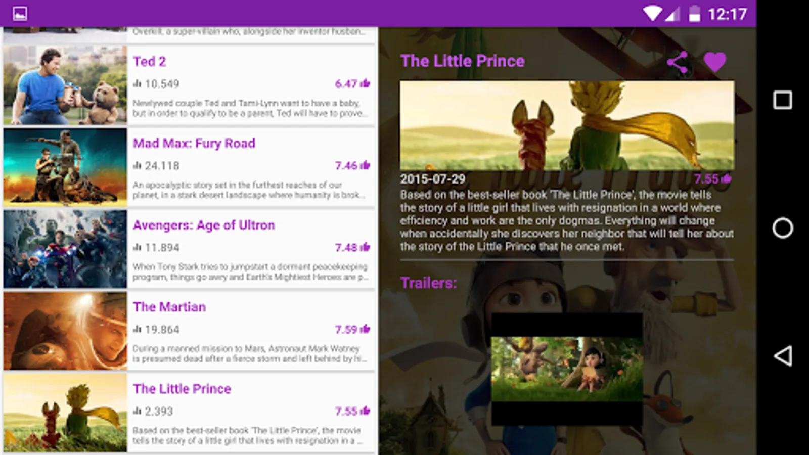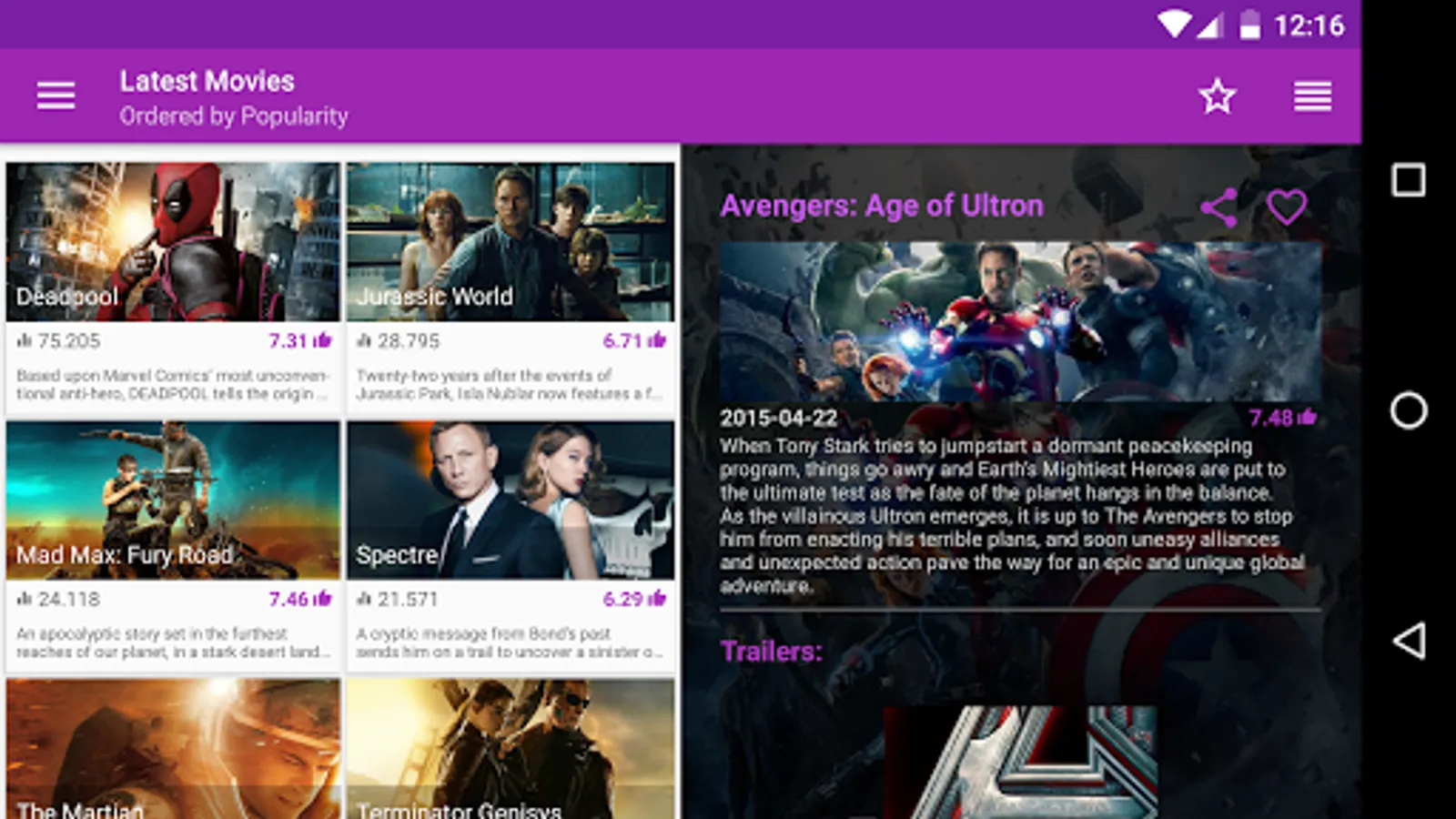 Latest Movies is an application that lists the 20 most popular and the highest rated recent movies and their trailers. Check their overview, release date, and many movie images. View their latest trailers, reviews and compare them so you know what movie to watch on your next visit to the theater!