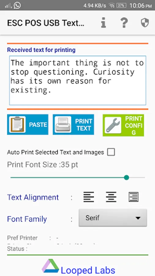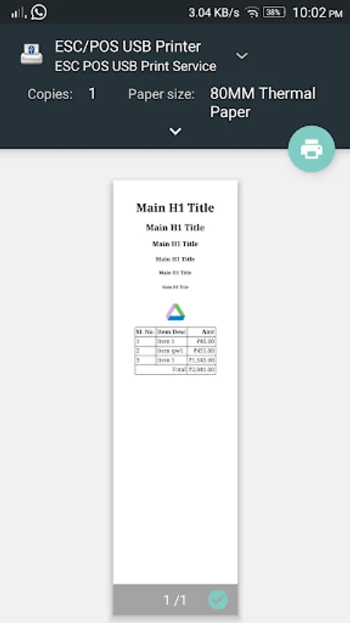 ESC/POS USB Thermal Receipt Print service is a easy way to print to your USB Enabled ESC/POS Compatible Thermal Receipt Printers from any android device. The app supports Android version Lollipop (5.0) and above.