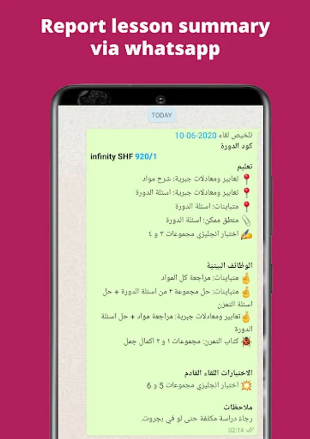 The main purpose of the app is to generate a lesson report, that should be sent to the students and the office.