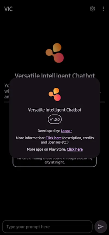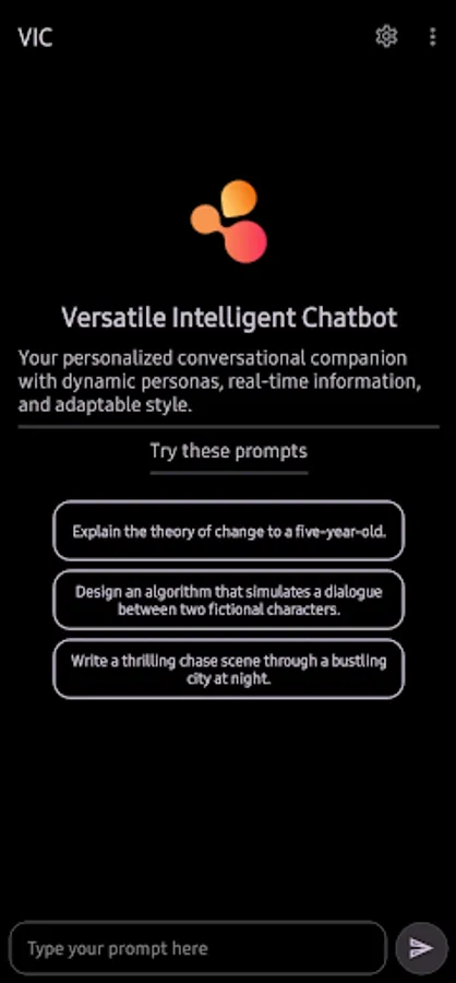 Introducing VIC (Versatile Intelligent Chatbot), a personalized AI assistant designed to cater to your every need. With dynamic personas and changeable conversational style, this companion adapts to your preferences, ensuring a truly customized experience.