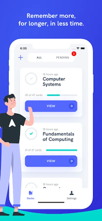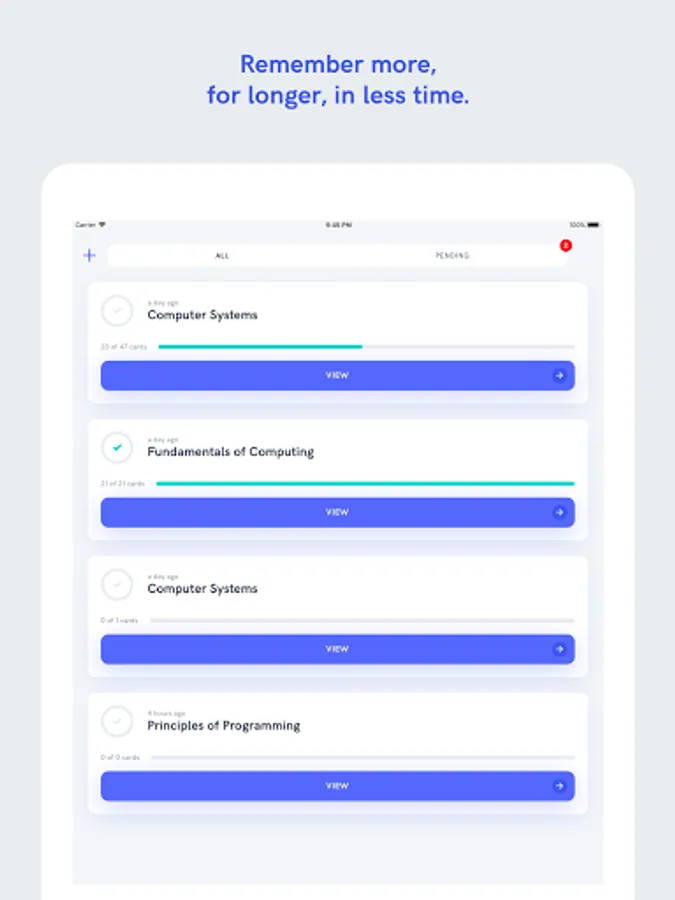 The scientifically proven algorithm behind Spaced Repetition will enhance your information retention for longer, in a very fast and convenient way.