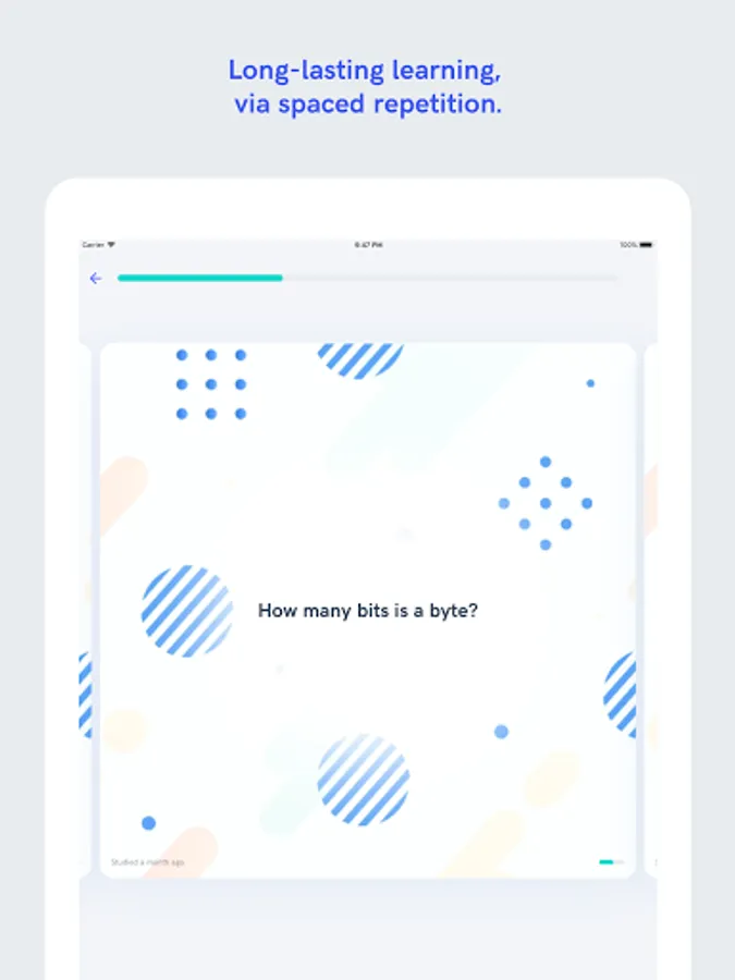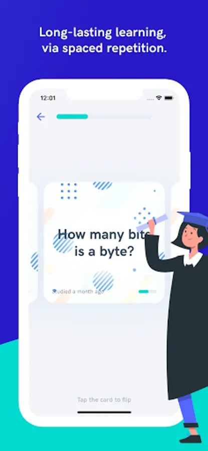 A smart algorithm takes care of showing you the relevant cards at the right time for efficiency.
