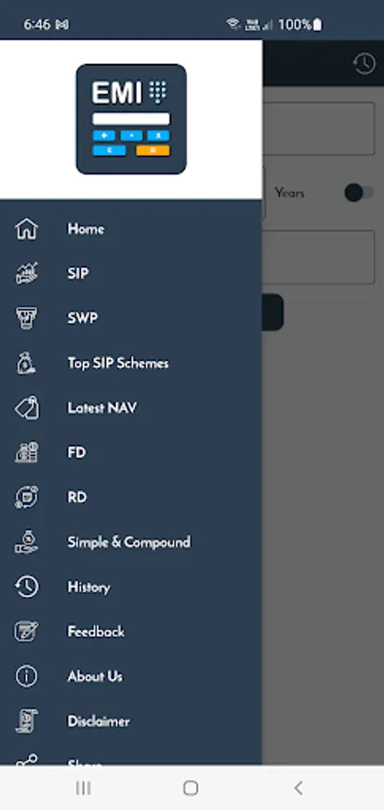 Other Calc Included: Along with EMI calc you can use other calcs like EMI calc, FD Calc, SWP Calc, SIP Calc, RD Calc etc within the same app.