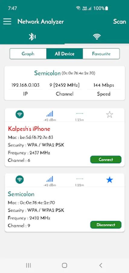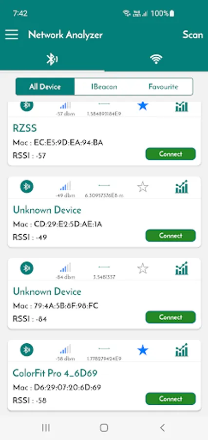 BLE Network Analysis: Gain insight into your Bluetooth Low Energy devices and connections. Scan and discover nearby BLE devices, monitor signal strength, and troubleshoot connectivity issues with ease.