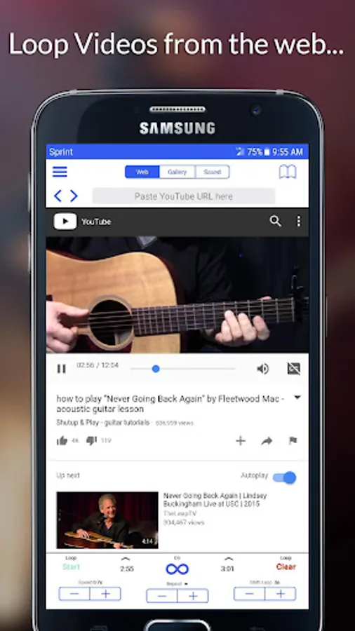 Just pick the video you want to watch, click to set the start and end points, and you are ready to learn! You can also slow down (or speed up) the video, shift the loop around and even save your loop to revisit later.
