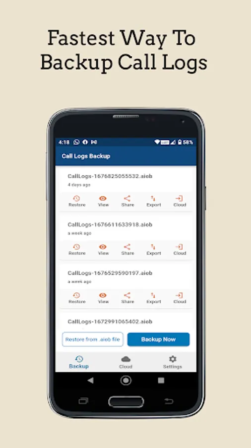 (*Please note that .csv files cannot be used to restore call logs. Only .aiob files can be used to restore call logs which ensures safety and authenticity of your call logs data).
