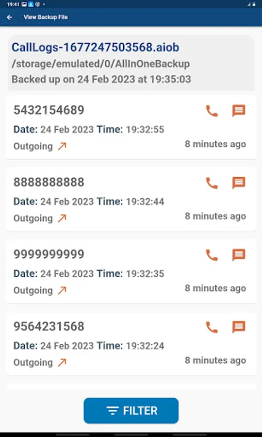 - Effortlessly share your saved call log backup files.
