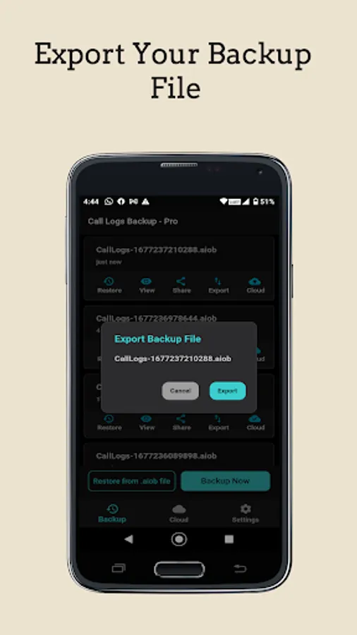 - Backup your call logs with a single tap.