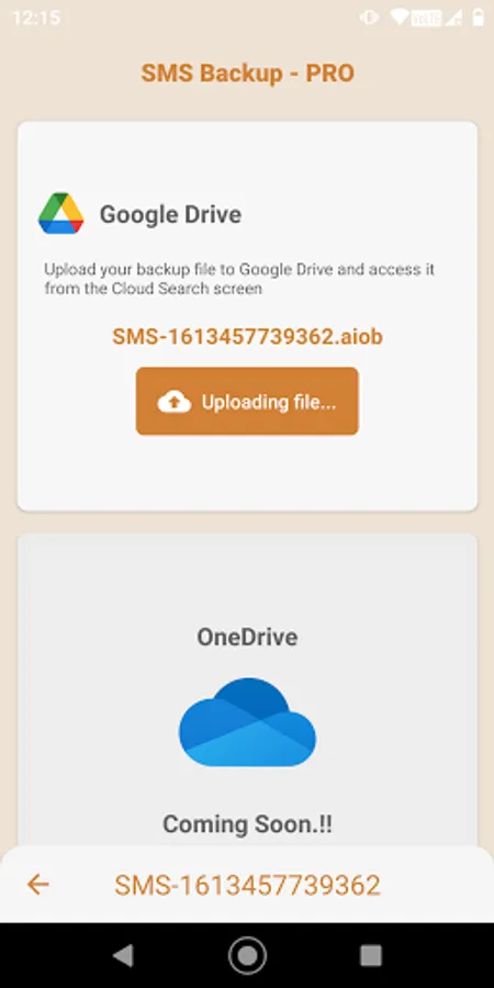 - Upload backup files to your Google Drive.