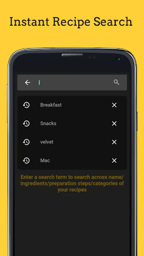 The instant search feature lets you quickly search recipes across all recipe names, categories, ingredients, and steps to prepare.