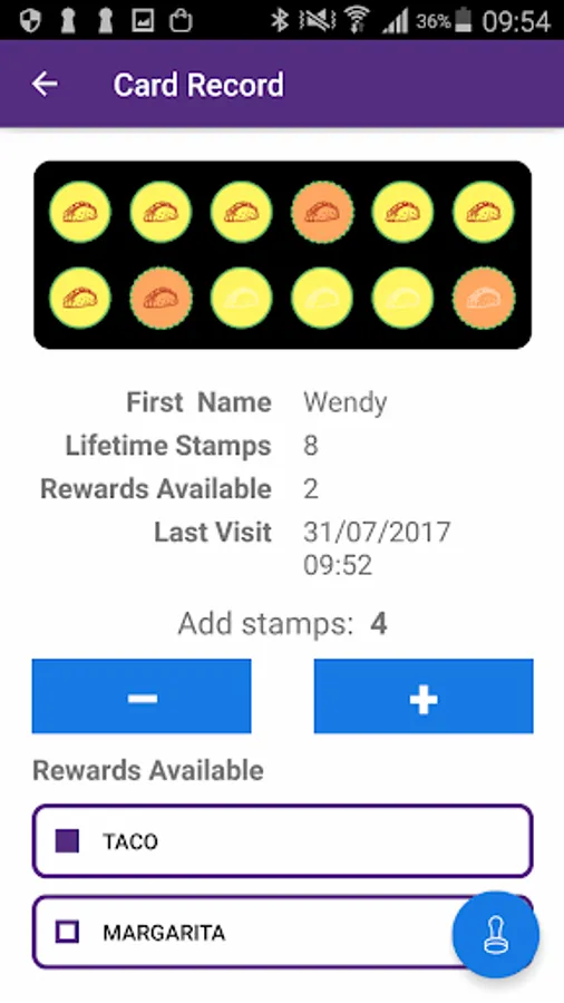 - increase or decrease the number of stamps on your customers' Loopy Loyalty digital stamp card,