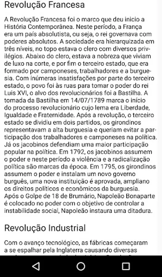 With a simple and fast interface, the application covers the high school history content. Without requiring connection to the network, the application can be accessed at any time anywhere, assisting and preparing you for tests and entrance exams.