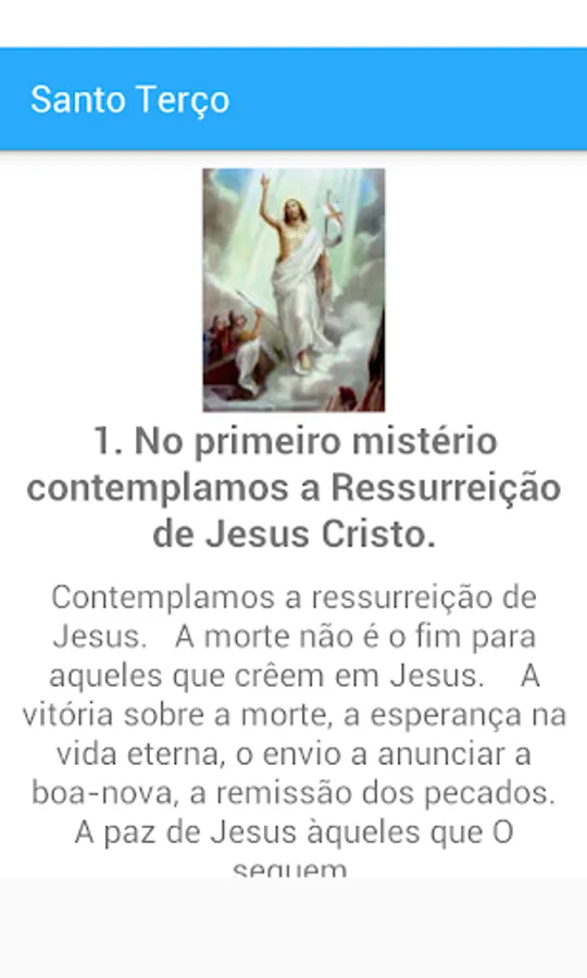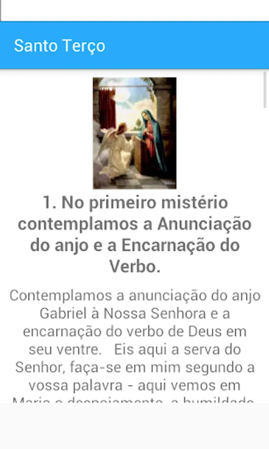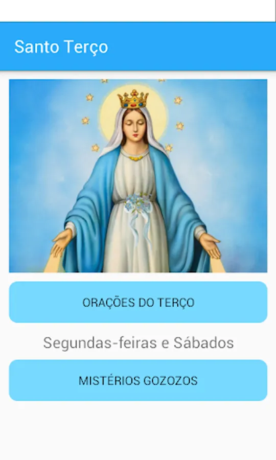 The application aims to bring the third and Mariano with the opening prayers of the rosary and the description of all mysteries.